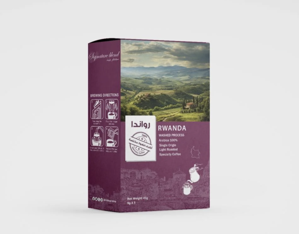 قهوة رواندا المختصة تقدم تجربة غنية تمزج بين النكهات الطبيعية للبرتقال، الأعشاب الخضراء، شاي قصب السكر، ولمسات من السكر البني. مستخرجة من مزارع عالية الارتفاع، ومعالجة بالطريقة المغسولة التي تبرز النكهات الفريدة والطبيعية للحبوب. الأظرف مزودة بفلاتر لسهولة التحضير والاستمتاع بكوب مثالي في أي وقت.