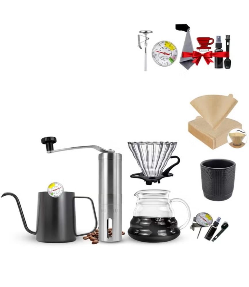 • مجموعة أدوات تحضير القهوة المقطرة بطريقة v60 مكونة من 10 قطع